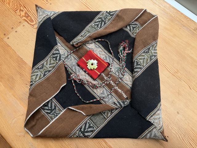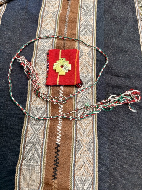 This soft and supple Mestana will gently embrace your precious stones. Intended as a ceremonial weaving, it featured the classic Ch’unchu wild indigenous soul design. This authentic, vintage Mestana holds a Chakana that can serve an orienting function for your spiritual journeys. A beautiful piece; a treasure from the Q’ero weavers in Cusco.