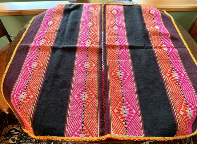 This is a one-of-a-kind energy piece, straight from the Q’ero Nation. The weavers of these powerful pieces live in the rarified atmosphere of the High Andes. They pray while they weave, bringing in all the sacred energy of Pachamama and the Hatun Apus. The colors are vibrant and the primary patterns represent the world organization in energy terms. This cloth, obtained from don Francisco Chura Flores, is looking for a worthy steward. Do you feel the call?