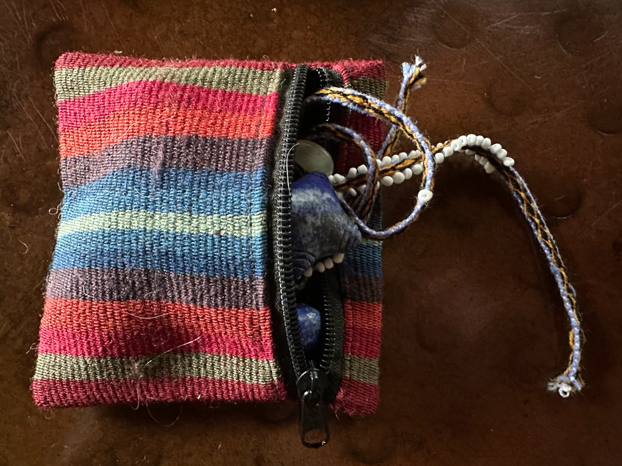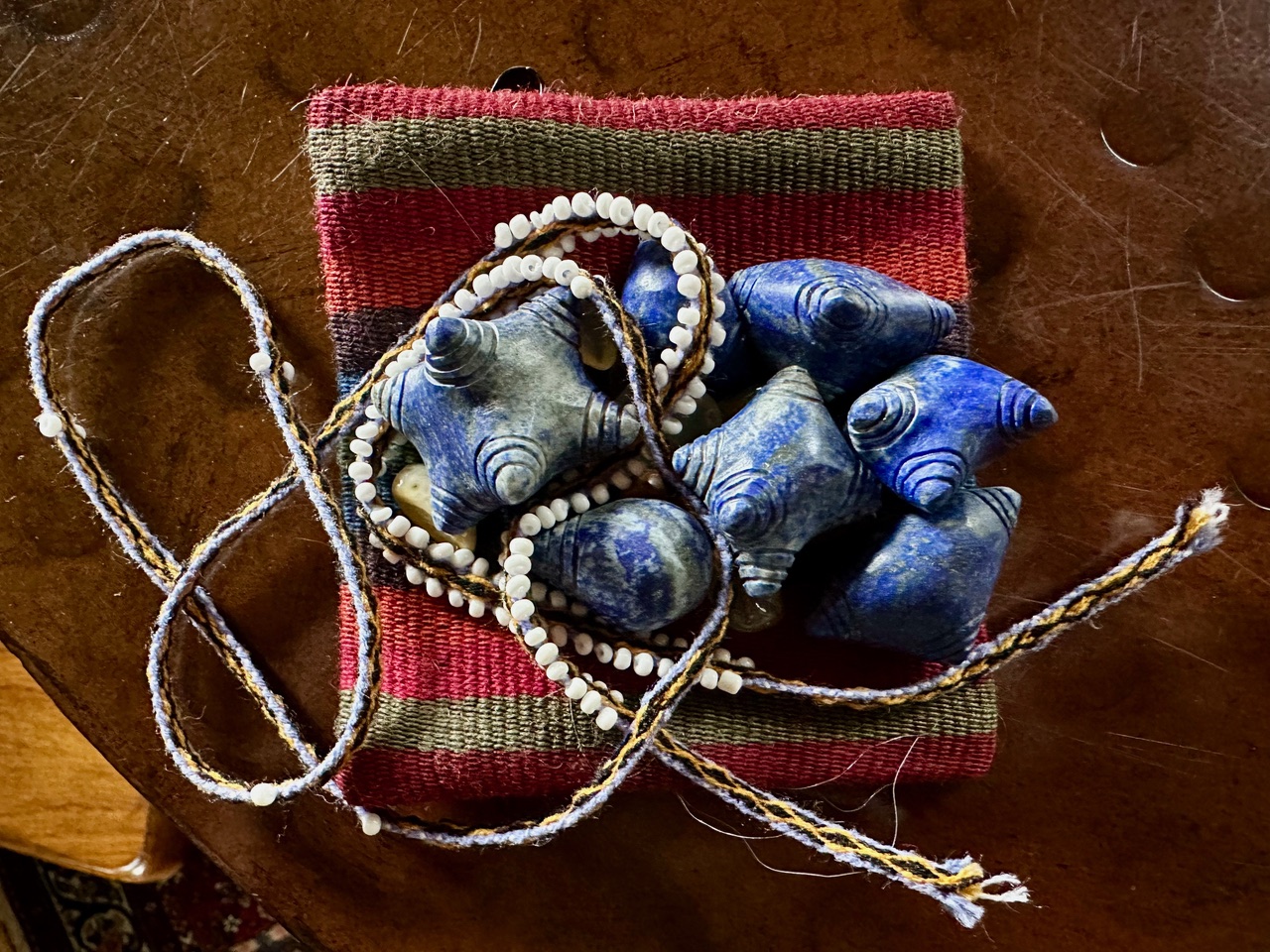 What a beautiful companion to your Mesa/Misha explorations. These hand carved sacred stones bring delight and invites exploration. Embraced by a naturally-dyed, hand-woven rainbow zip bag – a delight in your pocket or within your sacred bundle. Q’ero Cosmology at your fingertips – enjoy!